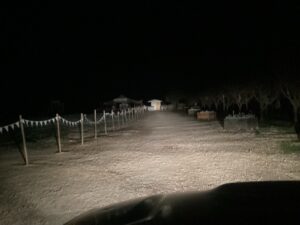 Il buio della notte, nonostante i fari del parcheggio, non consente una visione completa del posto che mi circonda.